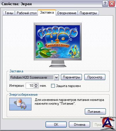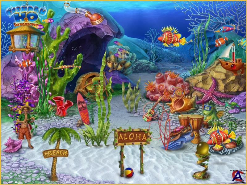 В игре есть свой скринсервер - аквариум. Зайдите в папку с игрой и кликните по файлу "Fishdom H2O Screensaver.scr", и через пару секунд у вас устанавливается заставка на компьютер с музыкальным сопровождением. Чем дальше вы проходите игру и усовершенствуете свой аквариум в игре, тем лучше заставка на компьютере.
