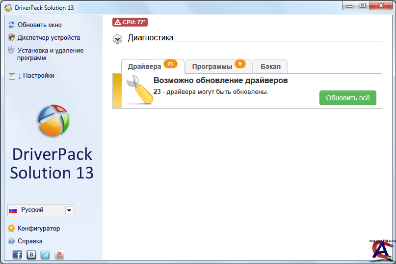 DriverPack Solution - это самая популярная программа для автоматической установки, обновления и поиска драйверов. Поможет скачать драйвера бесплатно. Это универсальный менеджер установки драйверов для всех версий Windows. В отличие от встроенной в Windows 7 функции обновления драйверов этой программой можно пользоваться даже без наличия Интернета и для поиска/установки драйверов не только на устройства популярных вендеров (как в случае сWindows Update).