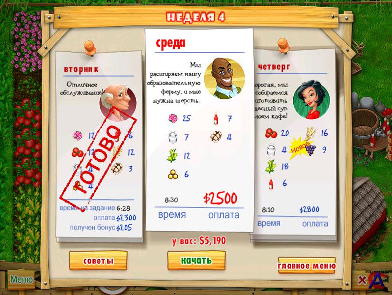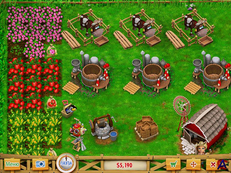 Переполох на ранчо. Системные требования для игры Переполох на ранчо: PII-600 / 64M RAM / 16M Video 3D, Windows XP, DirectX 9.0 Эх, огурчики-помидорчики! Увлекательная бизнес-стратегия, повествующая о девушке по имени Сара, которая решила основать свое ранчо. Она практически не знакома с особенностями фермерского дела, поэтому без вашего содействия ей никак не обойтись. В этой игре вы получите полную свободу действий. Планировка фермы, очередность выполнения заданий — все это будет целиком зависеть от вашего желания. Оберегайте растения от вредителей и засухи, кормите животных и покупайте новое оборудование. Со временем ваша ферма заметно увеличится в размерах, а заказчики будут без ума от ассортимента ваших товаров. В этой игре вас ждет красочная графика, реалистичные звуки живой природы, а также очень увлекательный игровой процесс. Помогите Саре справиться со всем трудностями и построить ферму ее мечты. ЗЫ: Я бы не поставил на раздачу эту игру, если бы не моя дорогая жена. Она играет в неё каждый день и прошла игру уже несколько раз. Ей эта игра очень нравится.