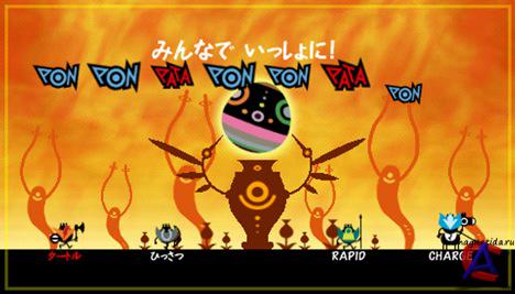 Платформа: PlayStation Portable Тип образа: ISO Язык интерфейса: русский Жанр: аркада Прошивка: 5.00 М33-3 и выше Работоспособность проверена: да Установка: 1)Скачайте образ игры 2)Скопируйте его на карту памяти PSP в папку ISO 3)Запускаем, играем с удовольствием! Описание игры: Patapon вызывала немалый интерес еще с самого начала рекламной кампании. Игра от создателей LocoRoco использует примерно туже идею, что и сага о поющих колобках: напрямую управлять глазастым войском не получится, можно лишь отдавать приказы, чеканя на кнопках PSP различные комбинации в такт с фоновыми тамтамами. Уже через десять минут игры вы запомните на многие месяцы, чем отличается по последствиям pata-pata-pata-pon от pon-pon-pata-pon и в каком сочетании лучше всего применять две эти команды. Не выбиваться из ритма оказывается довольно просто, поэтому очень скоро появляются новые задачи и команды для их решения. Под бой барабанов племя будет ходить на охоту, истреблять враждебные племена и загонять досмерти тварей размером с полэкрана. Здесь ненавязчиво вводится элементарная тактика: с поля боя собираются разные трофеи, из которых нужно лепить новых воинов и оружие, превращая хилую банду глазастых в беспощадный отряд 300 спартанцев. При помощи тех же магических слов можно будет вызывать дождь, чтобы притушать вулканическую активность или менять направление ветра — так стрелы и копья летят дальше. Игра еще раз подчеркивает, что популярность технологически навороченной приставки PSP можно поднять простенькими артхаусынми проектами, которые сделаны с умом. Patapon становится второй работой, и вместо отдыха вы считаете в уме, сколько раз подряд нужно завалить огромного динозавра, чтобы состряпать пару лучников и новую саблю для главного воина. При этом игра все же просто замечательная, и ничего интереснее на PSP в ближайшем будущем не появится, так что pata-pata-pata-pon!