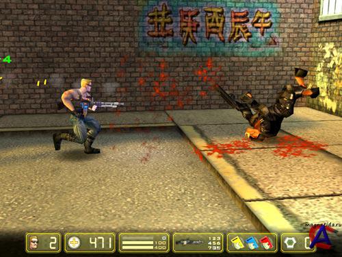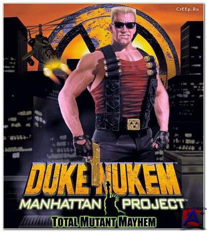 Duke Nukem: Manhattan Project Инфо: Дата выхода: 27.06.2002 Издатель: Ubi Soft на западе, 1C в России. Разработчик: Sunstorm Interactive Жанр: платформенная 3D аркада Требования: PII 350, 64Mb Ram, 3d-акс. Платформа: PC Язык интерфейса: Русский Язык озвучки: Англиский Таблетка: вшита Установка (пошаговая): нажать на установку Сюжет Ровно в полночь телефонный звонок разбудил Дюка Нюкема, известного своей небывалой крутизной героя, неоднократно спасавшего мир от инопланетян и прочих ублюдков. По данным последних анализов, дело придется иметь с глюонной жидкостью, ионизированной до состояния плазмы, сокращенно - ГЖОПП. По оперативным данным всего три ученых на свете пытались создать подобный материал, и только один из них выжил в ходе эксперимента: безумный гений по имени Морфикс. Времени - в обрез, и только один человек может разрушить дьявольские планы Морфикса и спасти Нью-Йорк - этот человек Дюк Нюкем. Чтобы спасти город, Дюку придётся высадиться на крышу небоскреба и начать своё расследование оттуда. Если кто и может спасти Манхеттэн, так это вооруженный до зубов, с неизменным чувством юмора наперевес - Дюк Нюкем! Оружие 1. Удар ботинком 2. Пистолет - Золотой орёл 3. Граната с детонатором 4. Чёрно-белый дробовик 5. Штурмовая винтовка M240 6. Дэволюционный луч 7. РПГ 8. Импульсная пушка 9. X-3000 (появляется после прохождения игры на третьей сложности) Враги 1. Пиг-копы (3 уровня мутации) 2. Ящеры мутанты (3 уровня мутации) 3. Летающие камеры (3 вида) 4. Девушки киборги (3 вида) 5. Тараканы мутанты (3 уровня мутации) 6. Крысы мутанты (3 уровня мутации) 7. Личинки мутанты (3 уровня мутации) 8. Роботы (3 вида) БОССЫ 1. Морфикс на вертолёте 2. Главарь ящеров мутантов 3. Крупный таракан мутант 4. Королева тараканов мутантов 5. Предводитель крыс мутантов 6. Крупная мутировавшая личинка 7. Женщина киборг 8. Уозма (находится на секретном уровне) 9. Гигантский робот Дюк Нюкем управляемый Морфиксом