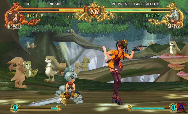 Год выпуска: 2011 Жанр: Arcade / Fighting Разработчик: Arc System Works Платформа: PC Тип издания: Неофициальный Язык интерфейса: Японский, Английский в том числе Язык озвучки: Японский Таблэтка: Не требуется Системные требования: * Операционная система: Microsoft Windows XP/Vista/Win7 * Процессор: 1.8Ghz * Оперативная память: 1GByte DDR2 SDRAM * Место на жестком диске: 1.2Gb * Видеокарта: 128mb Описание: Battle Fantasia - игра в жанре файтинг, разработанная Arc Systems Work (Guilty Gear, BlazBlue). Визуально, новый файтинг представляет собой смесь 3D и 2D-графики, что сами разработчики называют 2,5D. Ближайший пример такого видеоряда - Street Fighter IV. В Battle Fantasia всего 12 бойцов с уникальными спецприемами у каждого, начиная от пирата и заканчивая кроликом в колпаке - фантазии разработчикам точно не занимать.
