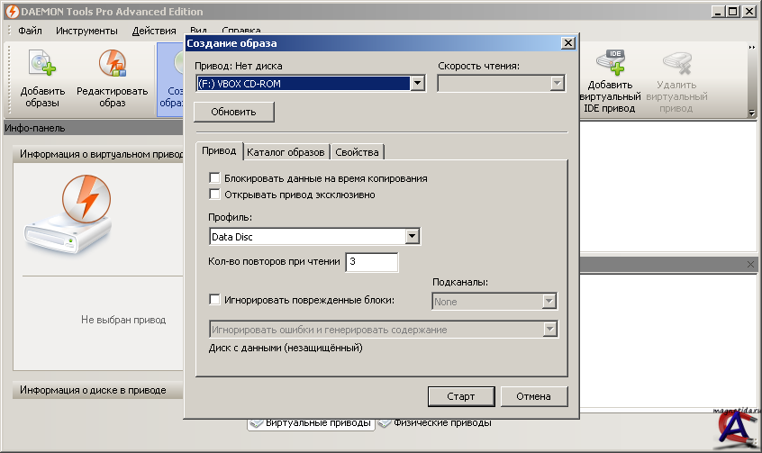 • Монтирование образов на физические приводы