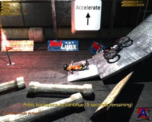 Системные требования: Pentium 4/Athlon XP 1.5 ГГц 256 Мб памяти 3D-ускоритель со 128 Мб памяти 150 Мб на винчестере Рекомендуемые требования Pentium 4/Athlon XP 1.5 ГГц 512 Мб памяти 3D-ускоритель с 256 Мб памяти 150 Мб на винчестере Описание: Симулятор мото-триала! В игре неплохая 3Д графика, прекрасная физика мотоцикла, отличная музыка. Вам предстоит провести свой мотоцикл через стройплощадку в попытках преодолеть всевозможные пряпятствия, будь то грузовики или спутниковые тарелки, совершая как можно меньше ошибок. Вас ждут простое управление и фантастический геймплей, реалистичная физическая модель, 3Д графика, разнообразные звуковые эффекты и соответствующее музыкальное сопровождение. Проходя очередное препятствие нужно помнить, что за любое падение - штраф в виде штрафных очков и 5-ти секундной паузы. Собственно, и финальная таблица содержит в себе игроков с наименьшим кол-вом штрафных.
