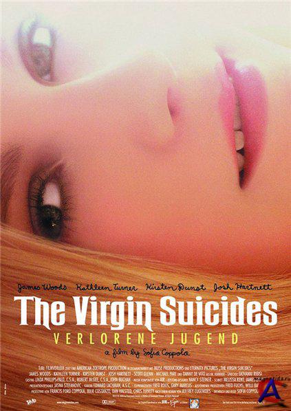 Качество: HDRip Видео кодек: 720x400 (1.80:1), 23.976 fps, XviD MPEG-4 ~1443 kbps avg, 0.21 bit/pixel Аудио кодек: Аудио 1: 48 kHz, AC3 Dolby Digital, 3/2 (L,C,R,l,r) + LFE ch, ~448.00 kbps avg русский Аудио 2: 48 kHz, AC3 Dolby Digital, 3/2 (L,C,R,l,r) + LFE ch, ~256.00 kbps avg оригинал Продолжительность: 01:36:39 Перевод: Профессиональный (многоголосый, закадровый) + оригинальная дорожка Субтитры: Русские (отдельно) Рейтинг mpaa: R - Лицам до 17 лет обязательно присутствие взрослого Продолжительность: 97 мин. Информация о фильме: В семье Лисбон пять дочерей-подростков. После того, как 13-летняя Сесилия кончает жизнь самоубийством, ее оставшиеся в живых сестры становятся объектом пристального внимания всех жителей городка, особенно соседских парней, устраивающих за девочками настоящую слежку.Желая оградить дочерей от окружающих, родители постепенно прекращают всяческое общение с внешним миром и запрещают дочерям выходить из дома.
