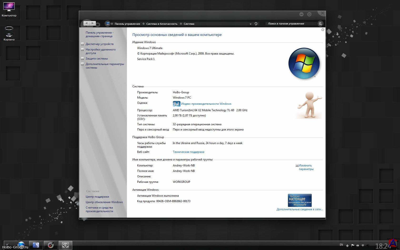 Авторы сборки:HOBO-GROUP Версия: 3.12 Лекарство: Присутствует ( сборка устанавливается сразу активированной при наличии в BIOS"e Slick 2.1 ) Язык интерфейса: Русский Описание: Сборка на основе оригинальных русских образов 7601.17514.101119-1850 Retail Ultimate GRMCULXFRER DVD с x86 архитектурой