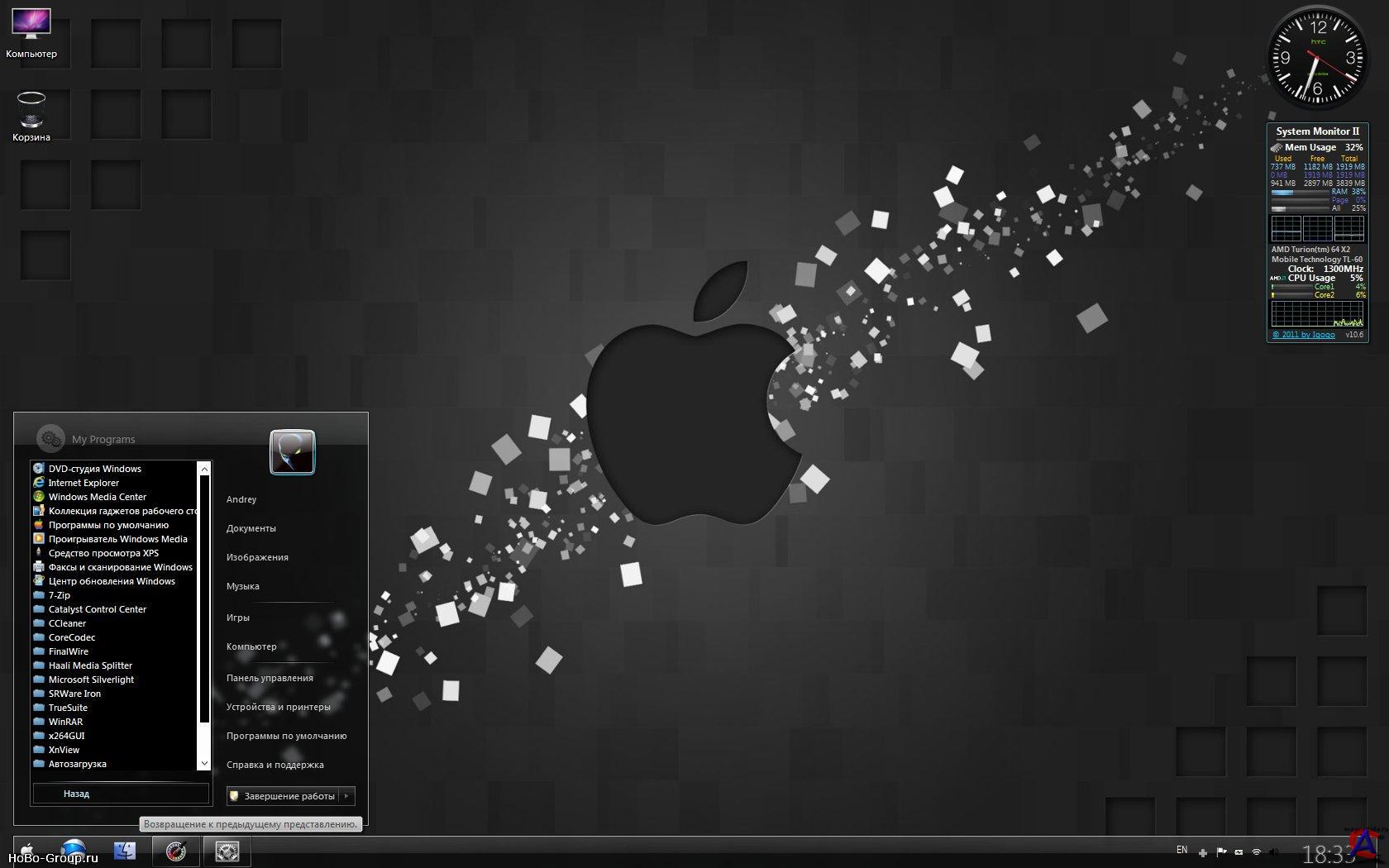 Дополнительно: UAC отключён. Интегрированы файлы сертификатов. Интегрирован последний DirectX. Исправлено расположение папки. Добавлены обои и темы Пропатчена для применения сторонних тем Применены различные твики ОС и WMP