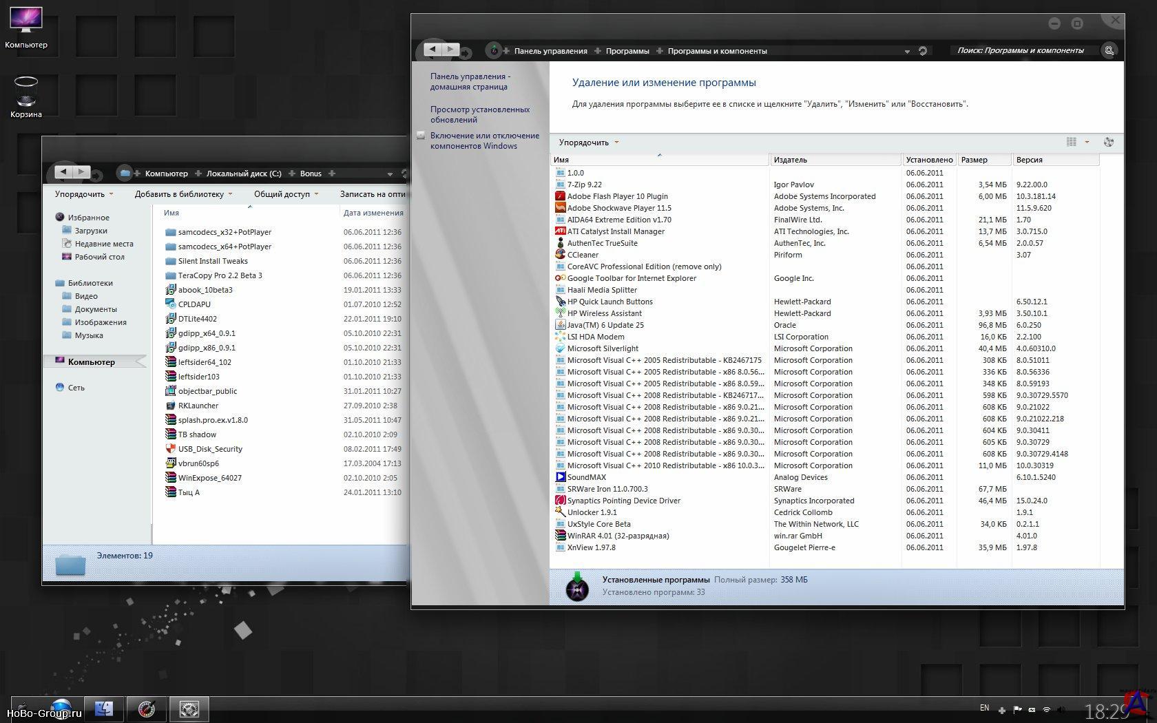 Интегрированы: WinRar, Aida 64, Adobe Flash Player, Unlocker, Iron, Java, Microsoft Visual C++, CoreAVC На диск C: добавлена папка Bonus