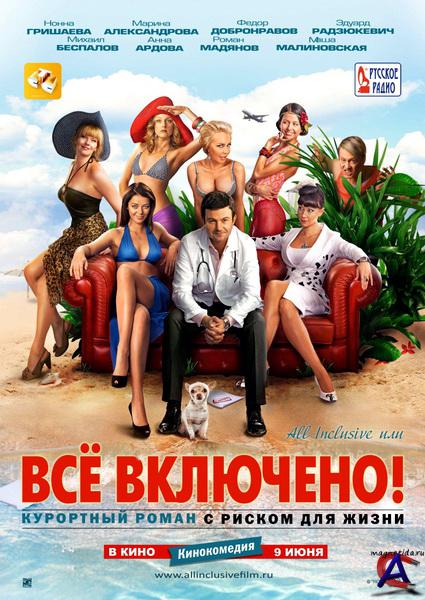 Качество: TS Видео кодек: XviD, 1938 kb/s, 720x368 Аудио кодек: AC3, 192 kb/s (2 ch) Жанр: комедия, Перевод: Не требуется Продолжительность: 01:31:29 Информация о фильме: Жизнь Андрея владельца дорогой и востребованной ветеринарной клиники для домашних животных с Рублевки определенно удалась. Мало того, он не обделен вниманием и прекрасных хозяек милых зверюшек. Но страстная ночь с женой олигарха Эвелиной меняет все: ревнивый муж Эдик очень доходчиво объясняет, что изменит сладкую жизнь успешного бизнесмена.Единственный выход это побег из страны. И Андрей уезжает в Турцию по программе «Все включено», не подозревая, что в нее включено намного больше, чем кажется на первый взгляд. За ним по пятам следует австрийский киллер Рудольф, а солнечные пляжи таят самое главное испытание в жизни