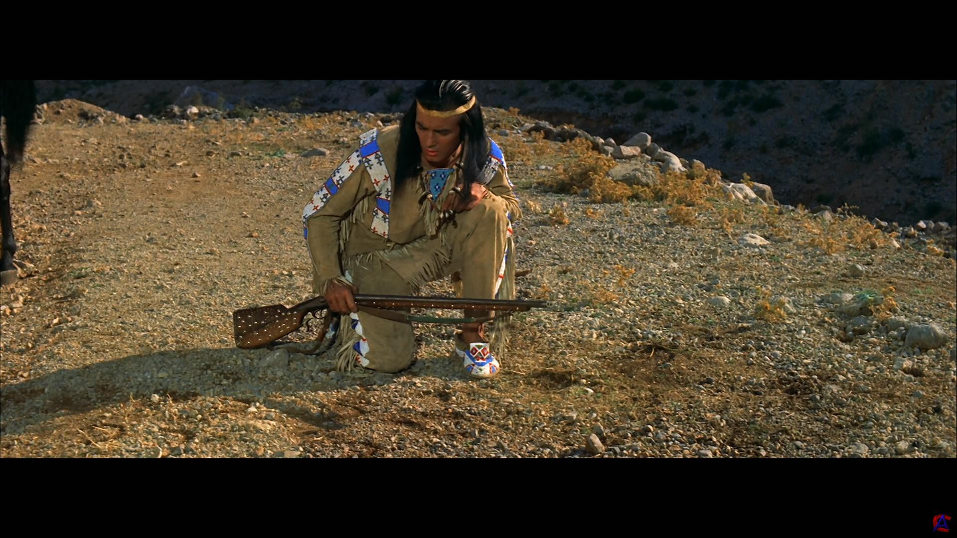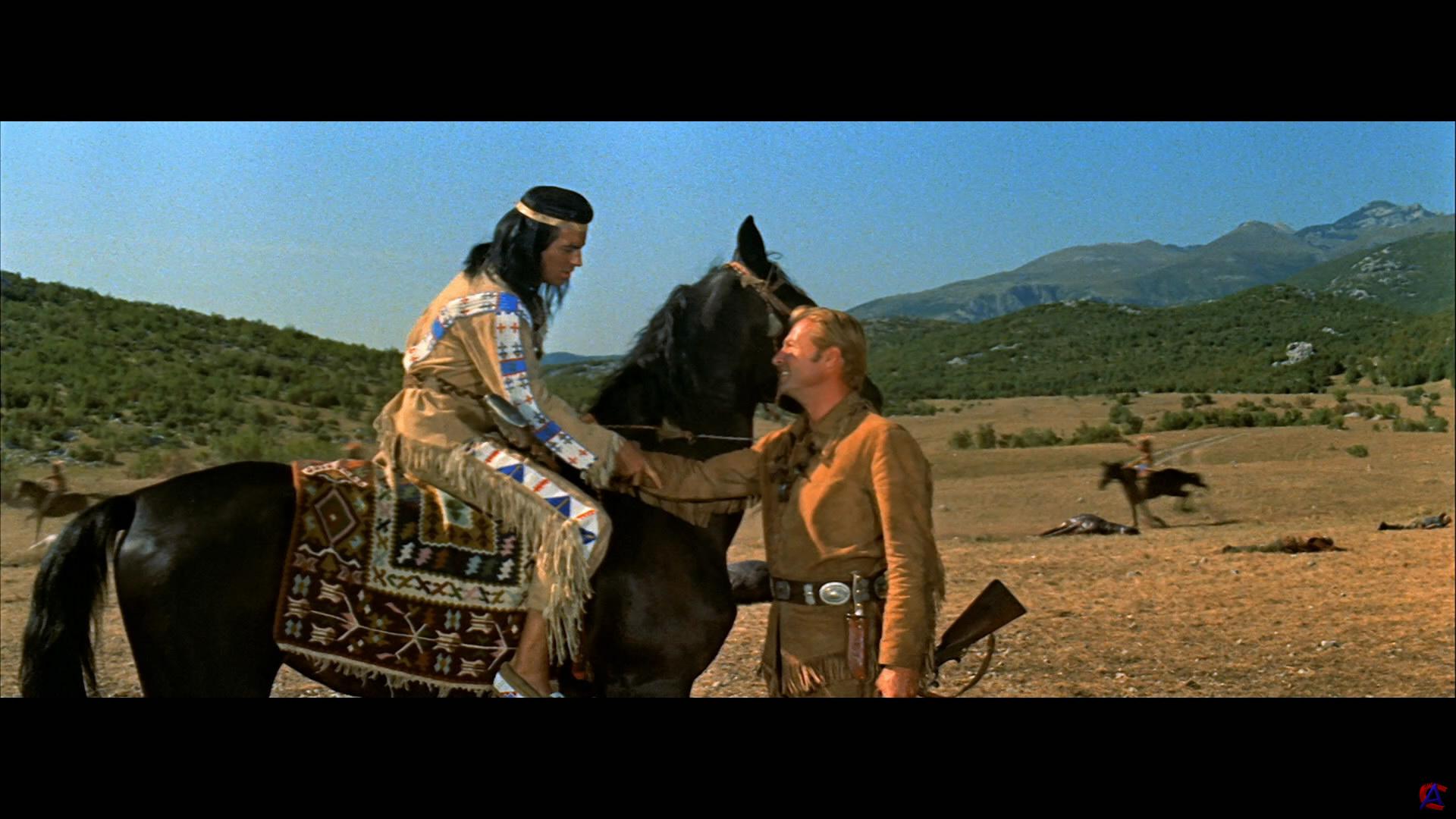 Качество: HD Видео кодек: 1920x1080 at 23.976 fps, MPEG-4 AVC, ~19294 kbps avg Аудио кодек: Russian: 48 kHz, AC3, 2/0 (L,R) ch, ~192.00 kbps avg |Советский Дубляж| Russian: 48 kHz, AC3, 3/2 (L,C,R,l,r) + LFE ch, ~448.00 kbps avg |Многоголосый закадровый| German: 48 kHz/16-bit, DTS-HD MA 5.1, ~1877.00 kbps avg German: 48 kHz, AC3, 2/0 (L,R) ch, ~320.00 kbps avg English: 48 kHz, AC3, 2/0 (L,R) ch, ~320.00 kbps avg |Дубляж| Жанр: приключения, вестерн, Перевод: |Советский Дубляж|Многоголосый закадровый| Премьера в мире: 14 декабря 1962 Продолжительность: 111 мин. Формат: .m2ts Информация о фильме: Вождь Виннету и Шеттерхенд идут по следу полковника Бринкли бессовестного негодяя, который во что бы то ни стало хочет заполучить легендарные сокровища Серебряного озера. Герои попадают в плен, и Бринкли первым добирается до пещеры с золотом. Он убивает стража и уже готов сбежать с заветным сокровищем, но умирающий страж приводит в действие секретный механизм, разрушающий пещеру.