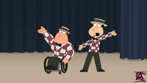 Описание: "Гриффины" (Family Guy) - анимационное ТВ-Шоу, созданное Сетом МакФерлайном (Seth MacFarlane) для телеканала FOX. Как нетрудно догадаться, главными героями шоу является семейка Гриффинов: тупой, но полный сумашедших идей, составляющих львиную долю шуток сериала, отец семейства Питер; его любящя и терпеливая жена Лойс, всеми силами пытающаяся превратить Гриффинов в нормальную семью; их интеллектуально развитый не по годам, вынашивающий идею мирового господства младший сын Стьюи; дочь-ботаник, обречённая из-за этого на одиночество и непонимание как в школе так и дома, Мэг; и 13-ти летний отсталый в развитии лет на 10, сын Крис. Также полноценным членом семьи является пёс Брайн - склонный к меланхолии эстет, спокойно наблюдающий с бокалом вина в лапе над приключениями Питера и остальных членов семьи (и это при всём притом, что остальные собаки в сериале не являются очеловеченными).