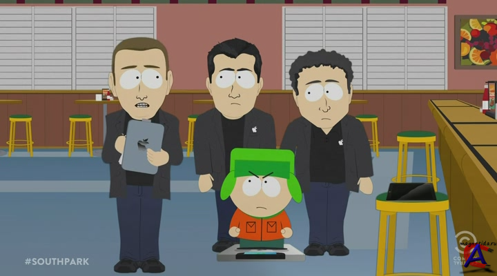 Описание: «Южный парк» (англ. South Park) — американский мультсериал, созданный Мэттом Стоуном и Треем Паркером. Иногда название переводится также как «Саут-Парк» или «Саус-Парк». Выпускается кабельным телеканалом Comedy Central с 1997 года. Основу сюжета составляют приключения четырёх мальчиков и их друзей, живущих в маленьком городке Саут-Парк, штат Колорадо. Сериал высмеивает недостатки американской культуры и текущие мировые события, а также подвергает критике множество глубоких убеждений и табу посредством пародии и чёрного юмора. «Южный парк» выходит поздно вечером и позиционируется как мультфильм для взрослых.