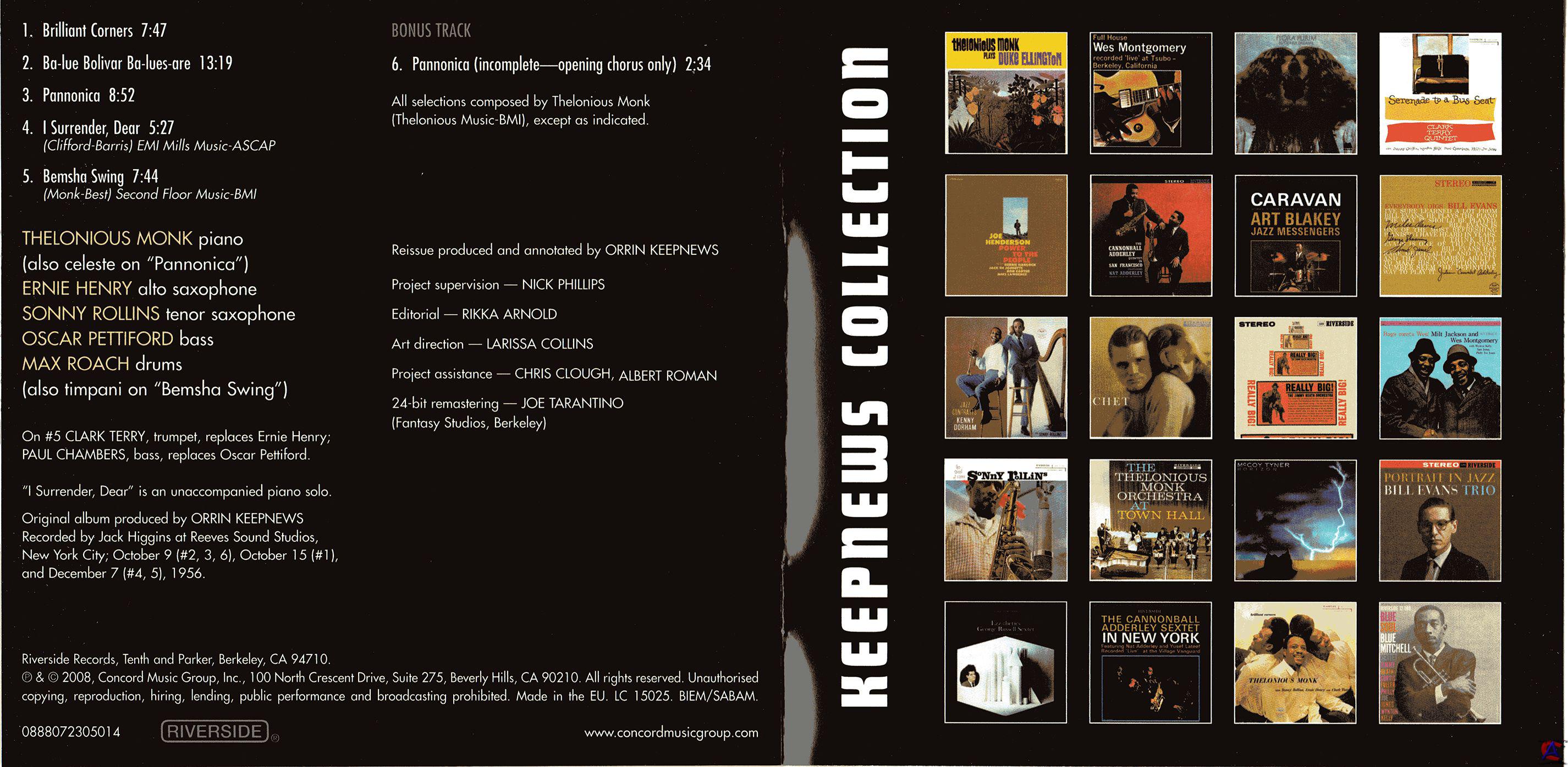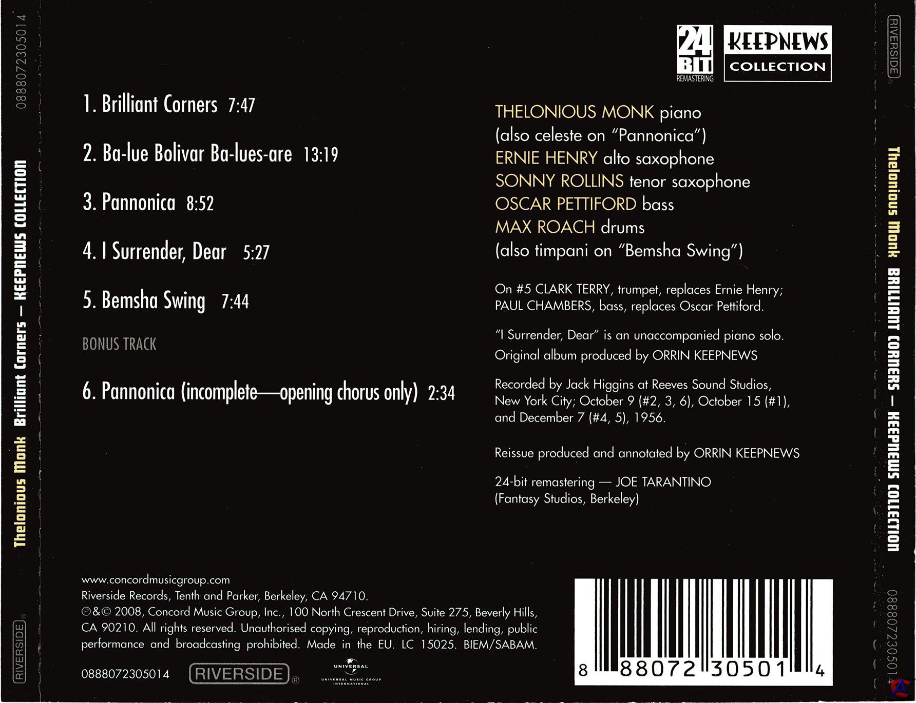 Трэклист Brilliant Corners 7:47 2 Ba-Lue Bolivar Ba-Lues-Are 13:19 3 Pannonica 8:52 4 I Surrender, Dear 5:27 5 Bemsha Swing 7:44 Bonus Track 6 Pannonica (Incomplete-Opening Chorus Only) 2:34