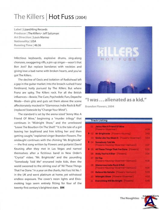 Подробнее Инди-группа The Killers была создана в 2002 году в Лас-Вегасе четырьмя участниками – Брэндоном Флауэрсом (вокал, клавишные), Дэйвом Кенингом (гитара, вокал), Марком Стормером (бас) и Ронни Ваннуччи-младшим (ударные). Свое название парни взяли из клипа New Order “Crystal” – оно было написано на ударных несуществующего ансамбля, который фигурировал в клипе. Это был далеко не первый вариант названия их коллектива – сначала они предполагали назваться The Genius Sex Poets, но, к счастью для всех, отказались от этой идеи. До того, как четверо участников группы сколотили группу, они успели сменить по несколько различных работ. Флауэрс, бросивший колледж, одно время работал коридорным в отеле Gold Coast. Кенинг, уроженец штата Айова, переехал в Лас-Вегас в 2000, после того, как бросил учебу в университете штата Айова. Он некоторое время проработал продавцом в магазине серии Banana Republic, но это занятие ему довольно быстро надоело. Марк Стормер подрабатывал курьером, развозящим медикаменты, а в основное время изучал философию в университете. Ронни Ваннуччи занимался по классу ударных в том же университете, а параллельно подрабатывал фотографом и водителем велотакси в огромном супермаркете. Формальное начало группы было положено, когда Флауэрс, оставшийся без своей первой группы Blush Response после того, как он отказался переехать вместе с ними в Лос-Анджелес, познакомился с Кенингом. Изначально Blush Response играли синти-поп – но после похода на концерт Oasis Флауэрс решил, что нужно двигаться в сторону гитарной музыки. Именно поэтому он ответил на объявление Кенинга в газете – тот не только был гитаристом в поисках группы, но и указывал среди своих любимых музыкантов все тот же Oasis. Флауэрс и Кенинг моментально сошлись характерами и начали репетиции. В качестве басиста у них тогда выступал сосед Кенинга, а за ударные сел еще один знакомый. Впрочем, долго эти басист с ударником не задержались, и вскоре Флауэрс и Кенинг остались вдвоем. И Стормер, и Ваннуччи играли в то время в других местных группах. Когда Флауэрс с Кенингом обратились к ним просьбой присоединиться к их группе, оба некоторое время сомневались, стоит ли делать это – обоим музыкантам группа казалось слишком «зеленой». Впрочем, Ваннуччи в конце концов принял решение вступить в The Killers, а Стормер довольно быстро подружился с Флауэрсом. Таким образом, он стал последним влившимся в состав группы музыкантом. Вскоре новая группа уже сыграла свой первый концерт – в клубе под названием The Junkyard («Свалка»). Понемногу юная группа стала привлекать внимание различных агентов и представителей лейблов. Так, встреча с представителем английского отделения Warner Bros закончилась вроде бы неудачей – контракт подписан не был; однако представитель взял демо-запись The Killers с собой в Англию, где и показал ее своему другу, владельцу одного независимого лейбла. Тот был весьма впечатлен, и вскоре музыканты собирали чемоданы, отправляясь в Англию. Там их ждал контракт с Лондонским лейблом Lizard King Records, который к тому же имел контракт на распространение своей продукции через сеть куда более крупной компании Island Records. В июне 2004 года ребята уже выпустили свой дебютный альбом “Hot Fuss”. Первый сингл “Somebody Told Me” поначалу прошел незамеченным, но тут к делу подключился журнал NME, засыпавший The Killers похвалами за их выступления в Англии. Второй сингл, “Mr. 