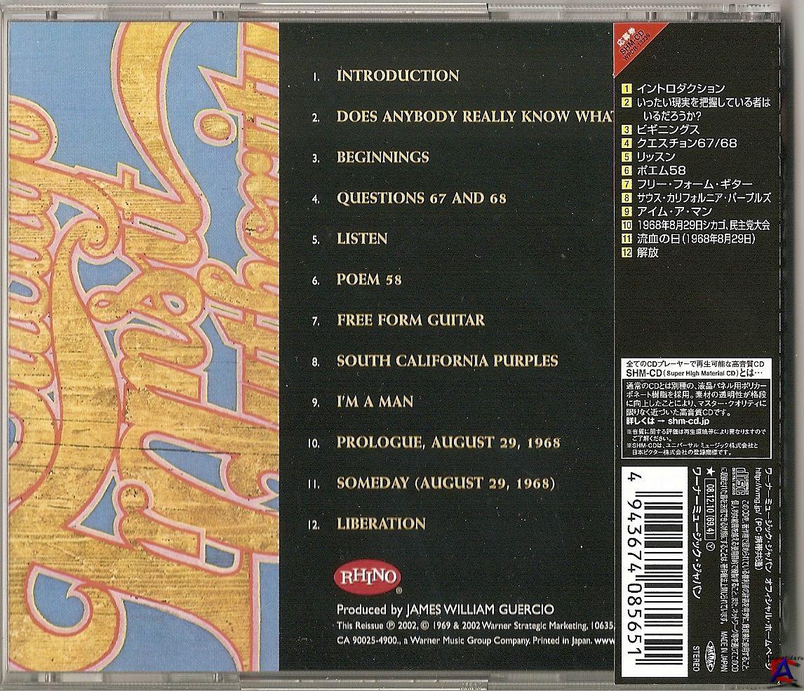 Трэклист 1 Introduction 2 Does Anybody Really Know What Time It Is? 3 Beginnings 4 Questions 67 And 68 5 Listen 6 Poem 58 7 Free Form Guitar 8 South California Purples 9 I"m A Man 10 Prologue, August 29, 1968 11 Someday (August 29, 1968) 12 Liberation