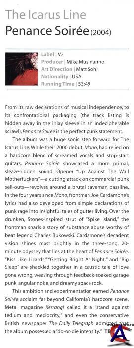 Penance Soiree- второй альбом рок-квинтета из Голливуда Icarus Line, обратившего на себя внимание в 1997-м году одним из длиннейших названий для диска в истории музыки - «Highlypuncturingnoisetestingyourabilitytohate»