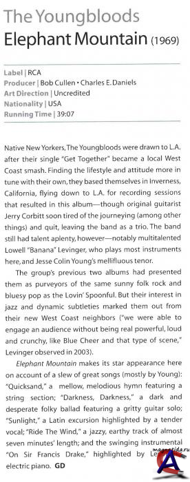 Подробнее Первым к их компании примкнул джазовый барабанщик Джо Бауэр, затем появился гитарист-клавишник Лоуэлл Левингер по прозвищу "Банан", а вот с басистом оказалось посложнее. Несмотря на то, что на данную должность претендовали такие личности как Феликс Паппаларди ("Mountain") и Харви Брукс ("Electric Flag"), все кандидаты были забракованы, и Джесс взялся за четырехструнку сам. Название для новоиспеченной группы долго искать не пришлось, поскольку Янг позаимствовал его со своего второго альбома. Свой первый концерт "Youngbloods" отыграли в "Gerde"s Folk City", а спустя несколько месяцев стали "домашней командой" нью-йоркской кафешки "Cafe Au Go Go". Вскоре на коллектив стали обращать внимание записывающие фирмы, и музыканты сделали пару демок для "Mercury Records". Однако контракт группа заключила не с этой фирмой, а с "RCA", на которой вышли два первых альбома. Никакого резонанса эти работы не вызвали, но дебютный сингл, "Grizzly Bear", стал так называемым "минорным хитом". Еще одна сорокапятка, "Get Together", с песней Дино Валенти также поначалу пролетела мимо широкой публики, и лишь спустя два года, когда вещица попала в телевизионный ролик, переизданный сингл ворвался в горячую десятку. Между тем Янг оставался недоволен сотрудничеством с "RCA" и в 1967 году перевез свою команду в Сан-Франциско. Здесь на "West Coast Records" группа дебютировала с альбомом "Elephant Mountain". Именно на этой пластинке, записанной под руководством кантри-продюсера Чарли Дэниелса, в полной мере проявился тот самый калифорнийский привкус, позволивший критикам назвать "EM" лучшей работой в дискографии "Youngbloods". Но внутри коллектива не все проходило гладко, и если материал двух первых пластинок сочинял тандем Янг-Корбитт, то во время сессий "Elephant Mountain" Джерри поспешил откланяться, и Джессу пришлось управляться одному. В урезанном до трио составе команде удалось пристроиться на дочернее отделение "Warner Brothers" "Racconn", где вышли еще четыре ее альбома. Впрочем, все эти пластинки не несли в себе ничего особо интересного – две из них являлись концертными записями, а на двух других звучали в основном каверы. В 1971 году к коллективу присоединился знакомый Янга по бостонским денькам Майкл Кэйн, однако его появление никак не повлияло на дальнейшее творчество, и спустя несколько месяцев "Youngbloods" распались. Джесс Колин продолжил заниматься сольной карьерой, а в 2005-м вышел архивный концертник "Beautiful: Live in San Francisco 1971".