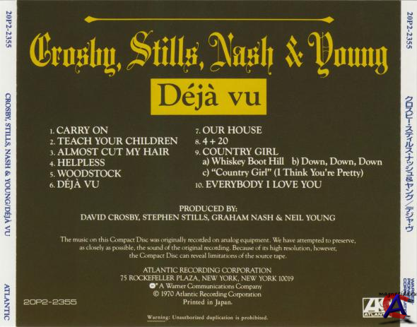 Трэклист 01 Carry On 4:25 02 Teach Your Children 2:53 03 Almost Cut My Hair 4:25 04 Helpless 3:30 05 Woodstock 3:52 06 Dйjа Vu 4:10 07 Our House 2:59 08 4 + 20 1:55 09 Country Girl 5:05 a Whiskey Boot Hill b Down, Down, Down c Country Girl (I Think You"re Pretty) 10 Everybody I Love You 2:20