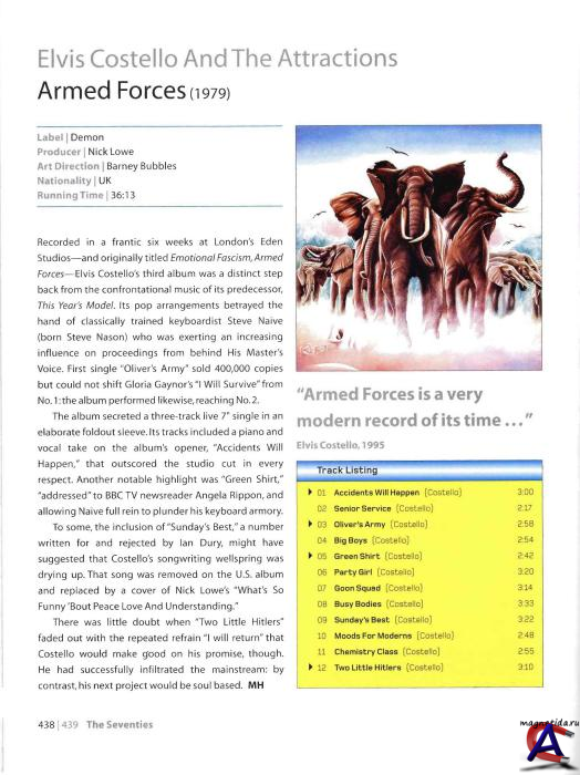 Трэклист Armed Forces 1-1 Elvis Costello & The Attractions – Accidents Will Happen 3:01 1-2 Elvis Costello & The Attractions – Senior Service 2:17 1-3 Elvis Costello & The Attractions – Oliver"s Army 2:59 1-4 Elvis Costello & The Attractions – Big Boys 2:56 1-5 Elvis Costello & The Attractions – Green Shirt 2:43 1-6 Elvis Costello & The Attractions – Party Girl 3:24 1-7 Elvis Costello & The Attractions – Goon Squad 3:14 1-8 Elvis Costello & The Attractions – Busy Bodies 3:35 1-9 Elvis Costello & The Attractions – Sunday"s Best 3:22 1-10 Elvis Costello & The Attractions – Moods For Moderns 2:50 1-11 Elvis Costello & The Attractions – Chemistry Class 2:56 1-12 Elvis Costello & The Attractions – Two Little Hitlers 3:16 1-13 Elvis Costello & The Attractions – (What"s So Funny "Bout) Peace, Love And Understanding? 3:32