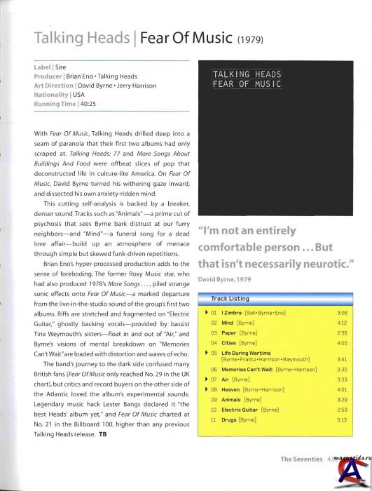 Подробнее Опираясь на фанк, классический минимализм и африканский рок, Talking Heads удалось создать наиболее оригинальную танцевальную музыку «новой волны». Основатели группы Дэвид Бирн и Крис Франтц вместе учились в одной из нью-йоркских школ дизайна (Бирн увлекается дизайном и живописью и по сей день); еще до того, как записать свой первый альбом, группа съездила с гастролями в Европу, после его выхода также постоянно гастролировала. А альбом, названный «77», попал в американский Top 100. Все их последующие работы также входили в Top 40. Вскорости каждый из участников начал сольную карьеру, хотя группа и не распадалась — наибольшего успеха на самостоятельном поприще достиг Бирн: он и рисует, он и музыку пишет, он и в кино снимается. Группа же официально просуществовала до 1991 года. В 1996 году группа возродилась под названием The Heads (без участия Бирна) и записала новый альбом. Команда была основана бывшими студентами дизайнерской школы Дэвидом Бирном (р. 14 мая 1952, Дамбартон, Шотландия; вокал, гитара), Крисом Францем (Чарлтон Кристофер Франц, р. 8 мая 1951, Форт Кэмпбелл, США; ударные) и Тиной Веймаутс (Мартина Мич, р. 22 ноября 1950, Коронадо, США; бас). Сначала трио выступало под вывеской «Artistics», но после того как в 1974 году друзья перебрались в Нью-Йорк, группа сменила название на «Talking Heads». На первом же концерте, состоявшемся в июне 1975-го в панковском клубе «CBGB’S», их приметил представитель «Sire Records» Сеймур Стейн, предложивший ансамблю подписать контракт с его фирмой. В декабре 1976-го вышел дебютный сингл «Love — Building On Fire», на котором уже присутствовал нетривиальный саунд группы. Вскоре к ансамблю присоединился клавишник и гитарист Джерри Харрисон (Иеремия Гриффин Харрисон, р. 21 февраля 1949, Милуоки, США), бывший член «Modern Lovers». После продолжительных гастролей квартет выпустил первый альбом «Talking Heads», проникнутый воодушевлением и интеллектом. Основной изюминкой релиза была композиция «Psycho Killer», на которой драматический вокал Бирна звучал в полную мощь. Пронзительно выкрикивающий свои партии, Дэвид походил на цыпленка, которому сворачивают шею. Для записи второго альбома, музыканты обратились за помощью к продюсеру Брайену Ино. В результате на свет появилась замечательная работа «More Songs About Buildings And Food». Эксцентричный вокал Бирна был дополнен потрясающей аранжировкой, и все песни звучали одинаково превосходно. При создании «Fear Of Music» группа снова воспользовалась услугами Ино. Наиболее популярными композициями с этого диска были «Life During Wartime» и сделанная в африканских ритмах «I Zimbra». После этого релиза Бирн занялся сольным проектом, записав в компании с Ино «My Life In The Bush Of Ghosts». «Talking heads» возвратились к своей работе, выпустив блестящий альбом «Remain In Light». Записанный при участии сессионных музыкантов (таких, например, как гитарист Адриан Белью), диск поражал своим экзотическим ударным ритмом и африканской полиритмией. Самая знаменитая композиция «Once In A Lifetime» стала хитом 1981 года. В начале 80-х музыканты уделяли большее внимание сольным работам. Бирн работал над музыкой к балету «The Catherine Wheel», а Франц и Веймаутс (муж и жена) успешно выступали в клубах со своим побочным проектом «Tom Tom Club». Образовавшуюся нишу заполнил «живой» двойник «The Name Of This Band Is Talking Heads», а летом 1983 на прилавках появился студийный альбом «Speaking In Tongues». Как всегда классно сработанный, диск сопровожда