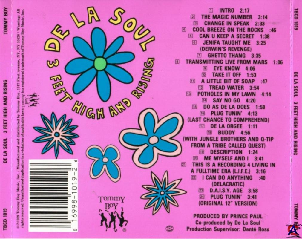 В 1989 году, когда вышел их первый альбом «3 Feet High And Rising», никто не звучал так, как они. Их message был направлен в сторону мира и гармонии, хотя в конце 80-х это было уже не так модно и круто. Из-за текстов они и оказались на лейбле Tommy Boy. Им было немного неуютно, однако они не роптали. Вскоре De La Soul стали членами «The Native Tongues» наряду с The Jungle Brothers, Queen Latifah и A Tribe Called Quest. Казалось, что это чисто коммерческое решение, ведь после этого их сингл «Me, Myself And I» стал лучшим R&B хитом, а альбом стал золотым. После этого с группы стали стричь купоны — на них подала в суд поп-команда 60-х The Turtles за то, что De La Soul без разрешения использовали их сэмплы. The Turtles выиграли дело, и с тех пор ни один сэмпл ни в одной хип-хоп композиции не может использоваться без разрешения правообладателей.
