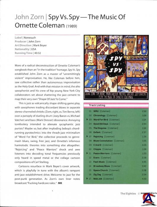 Spy Vs. Spy: The Music of Ornette Coleman" (1988) и другие. Оригинальная музыка этих авторов переосмыслена в новом ключе и отражена в зеркалах непредсказуемых ассоциаций. Как альт-саксофонист Зорн не только записывал собственные сочинения, но и часто играл на концертах и создавал студийные версии произведений многих своих коллег, скажем, того же Коулмана, Хэнка Мобли (