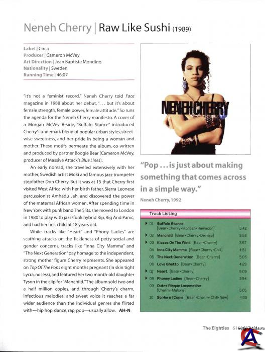 Дебютный альбом «Raw Like Sushi» вышел в 1989 году. Представляет из себя прекрасную смесь хип-хоп ритмов и поп-мелодий. За данный релиз Neneh Cherry получила множество хвалебных отзывов от музыкальных критиков, а также высокий рейтинг продаж ее дебюта.