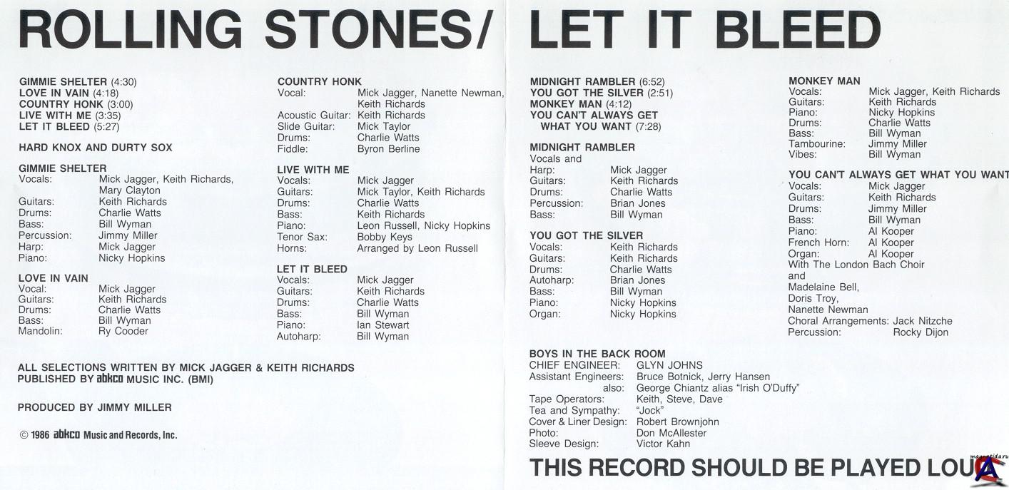 Все песни написаны Миком Джаггером и Китом Ричардсом, за исключением «Love in Vain».