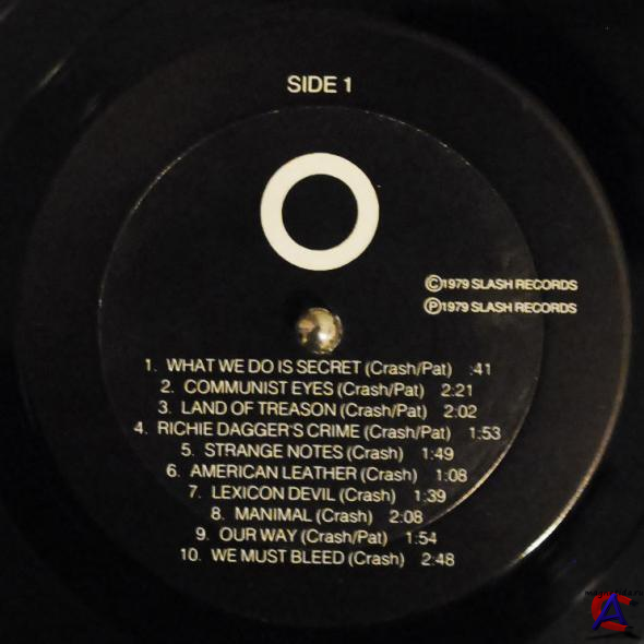 Трэклист A1 What We Do Is Secret 0:41 A2 Communist Eyes 2:21 A3 Land Of Treason 2:02 A4 Richie Dagger"s Crime 1:53 A5 Strange Notes 1:49 A6 American Leather 1:08 A7 Lexicon Devil 1:39 A8 Manimal 2:08 A9 Our Way 1:54 A10 We Must Bleed 2:48 B1 Media Blitz 1:28 B2 The Other Newest One 2:44 B3 Let"s Pretend 2:27 B4 Dragon Lady 1:35 B5 The Slave 0:57 B6 Shut Down 9:03