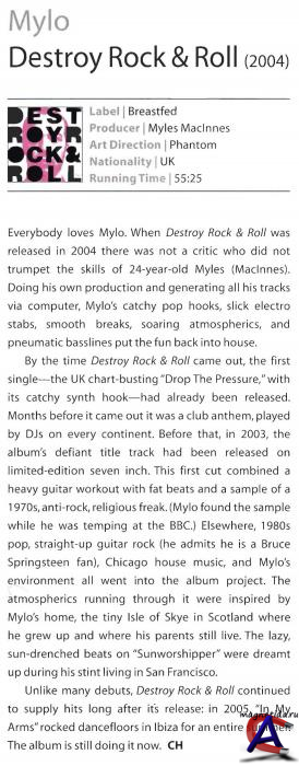 Чтобы разбрасываться подобными заявлениями, нужно быть либо чрезвычайно самоуверенным, либо очень недалеким человеком. Электронщик-самоучка Майлз МакИннис aka Mylo не является ни тем, ни другим. «Уничтожить рок-н-ролл» — это всего лишь название одной из его композиций, посвященной поп-музыке 80-х. Тоже пытавшейся, но так и не сумевшей одолеть привязанности человечества к дисторшированным гитарам. Но очень уж заманчивое название получилось — его и решено было вынести в заглавие альбома. Так что не придирайтесь к парню — уничтожать рок-н-ролл он не собирается. А даже если бы и захотел — не получилось бы.