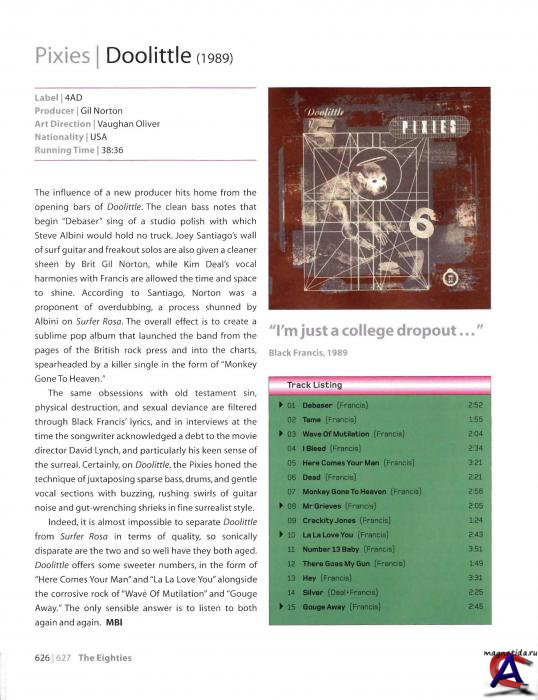 В отличие от своего предшественника, (Surfer Rosa, 1988), Doolittle отличался более мягким, «профессиональным» звучанием, контрастировавшим с исполненными чёрного юмора и порой почти непонятными текстами (излюбленные темы Фрэнка Блэка — насилие, инцест, психические заболевания; в таких песнях, как «Gouge Away» и «Dead» появляются отсылки к Библии, также характерные для творчества Фрэнсиса). Музыкальный материал здесь эклектичнее, нежели на Surfer Rosa: «Crackity Jones» навеяна испанскими мотивами, вступление к «Mr. Grieves» звучит как классическое рэггей, в «Silver» слышится очевидное влияние фолк-музыки. Такие песни, как «Tame» или та же «Crackity Jones» агрессивны и напористы, в то время как «Here Comes Your Man» и «La La Love You» более плавны и мелодичны. Кроме того, в записи альбома были задействованы необычные для Pixies музыкальные инструменты (например, скрипка и виолончель в «Monkey Gone To Heaven»).