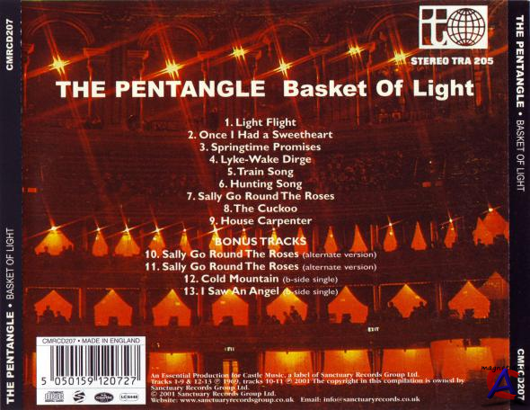 Pentangle — британский музыкальный коллектив, образовавшийся в 1967 году, исполнявший экспериментальный фолк-рок, обогащённый элементами джаза и блюза и — наряду с Fairport Convention — стоявший у истоков британского фолк-возрождения. Гитаристы-виртуозы Берт Дженш и Джон Ренборн, отдавая предпочтение акустике, создавали сложные, эклектичные аранжировки, балансируя на грани между фольклорными традициями и рок-авангардом. Pentangle не имели массового коммерческого успеха, но третий альбом Basket of Light (1969) поднялся до пятого места в хит-параде Великобритании; пять альбомов группы входили в списки Billboard 200.
