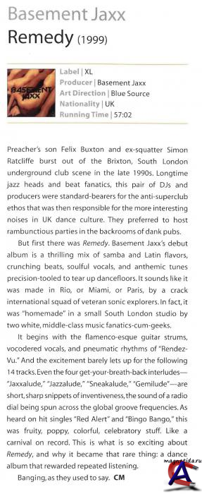 Basement Jaxx — британский дуэт в жанре электронной танцевальной музыки, созданный в 1994 году в Лондоне, состоящий из Саймона Рэтклиффа и Феликса Бакстона. Дуэт играет в основном хаус-музыку, выпустил пять студийных альбомов и сборник синглов, известен своими ремиксами песен популярных исполнителей. Remedy — дебютный студийный альбом британского танцевально-электронного дуэта Basement Jaxx, вышедший в 1999 году. Включает в себя сингл Red Alert — одну из их самых знаменитых песен. Rendez-Vu, Jump N" Shout и Bingo Bango также вышли как синглы. Red Alert стал первым синглом, ставшим номером один в американском чарте Hot Dance Music/Club Play. Rendez-Vu тоже достиг этого статуса позже в том же году, а Bingo Bango стал их третьм первым номером в следующем году.