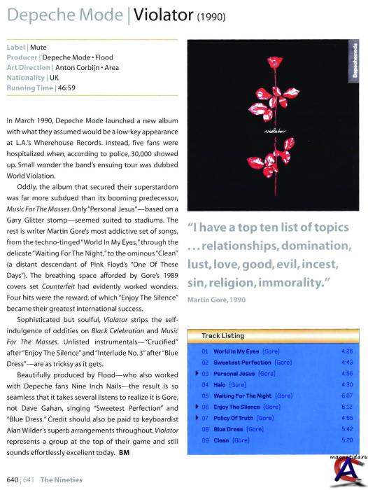 Трэклист Violator 1 World In My Eyes 4:26 2 Sweetest Perfection 4:43 3 Personal Jesus 4:56 4 Halo 4:30 5 Waiting For The Night 6:07 6 Enjoy The Silence 6:13 7 Policy Of Truth 4:55 8 Blue Dress 5:42 9 Clean 5:28 Enjoy The Silence Bonus MCD 01 Enjoy The Silence (7" Version) 4:15 02 Enjoy The Silence (Ecstatic Dub) 5:52 03 Enjoy The Silence (Ecstatic Dub) 5:44 04 Sibeling 3:16 05 Enjoy The Silence (Bass Line) 7:41 06 Enjoy The Silence (Harmonium) 2:42 07 Enjoy The Silence (Ricki Tik Tik Mix) 5:28 08 Memphisto 4:05