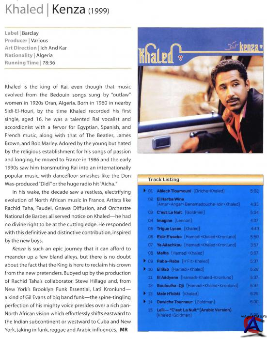 Музыка, которую играет Халед, на его родине, в Алжире, называется «рай». Смысл этого слова в русском языке вполне соответствует эйфорической и экстатической стилистике Халедовых напевов. В арабском мире певец стал звездой еще в незапамятные времена, после переезда во Францию в 1996 году к нему пришел и международный успех. У нас Халед известен только песней «Aisha», под которую любят мечтать о несбыточном операционистки московских банков. Равнодушие к творчеству арабского соловья тем более странно, что его райская музыка чрезвычайно похожа на звуковой ряд любимых народом индийских фильмов. Новый альбом Халеда вряд ли изменит что-то в этом плане: выйти на уровень безымянных звезд из «Танцора диско» или «Зиты и Гиты» ему не суждено. Слишком много в этом диске европейского лоска. Причем степень лоска ощутимо зависит от имени продюсера. Таковых на диске трое, и спродюсированные ими треки отличаются как небо и земля: автор «Aisha» Жан-Жак Гольдман гонит традиционную для Франции сентиментальную попсу, гитарист психоделической группы Gong Стив Хиллидж создает таинственные звуковые пейзажи с экзотическими партиями струнных, а Лати Кронлунд, лидер совершенно оголтелого эйсид-джазового состава Brooklyn Funk Essentials, превращает сладкий голос Халеда в пикантную приправу к своему фирменному блюду — сочному и мясистому фанку с визжащими дудками и стонущими телками.