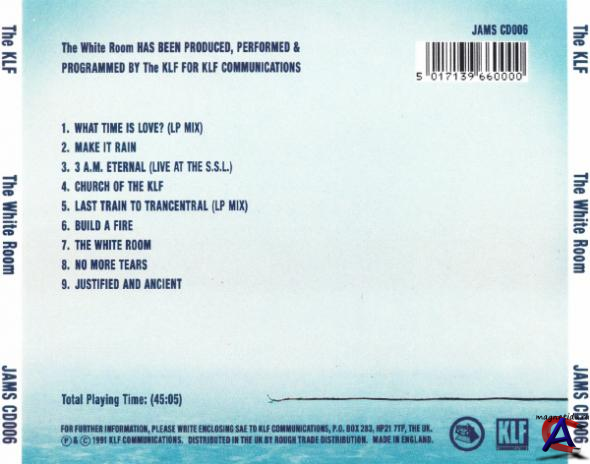 Трэклист The White Room (UK) 1 What Time Is Love? (LP Mix) 4:43 2 Make It Rain 4:00 3 3 A.M. Eternal (Live At The S.S.L.) 3:36 4 Church Of The KLF 1:53 5 Last Train To Trancentral (LP Mix) 5:33 6 Build A Fire 4:40 7 The White Room 5:15 8 No More Tears 9:24 9 Justified And Ancient 4:44