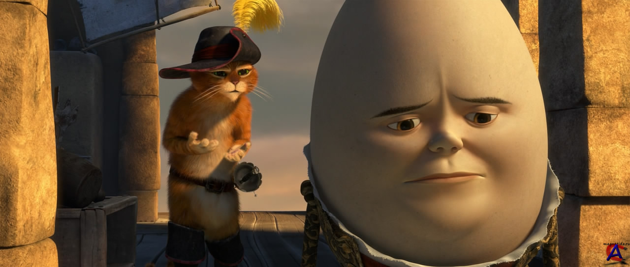 Качество: BDRip 720p Видео кодек: 4136 kb/s, 1280x544 Аудио кодек: Russian: AC3, 448 kb/s (6 ch) / English: AC3, 640 kb/s (6 ch) / AAC, 60 kb/s (2 ch) [Commentary] Жанр: мультфильм, комедия, приключения, семейный Перевод: Дублированнoе [лицензия] Рейтинг mpaa: PG - Рекомендуется присутствие родителей Продолжительность: 01:30:14 Информация о фильме: Мечи пересекутся и сердца будут разбиты в приключениях с одним из самых любимых персонажей из Шрэка котом в сапогах. Это удалая поездка ранних лет кота в сапогах, когда он объединяется с умным Шалтай-Болтаем и сообразительной Кисой, чтобы украсть знаменитую Гусыню, несущую золотые яйца.