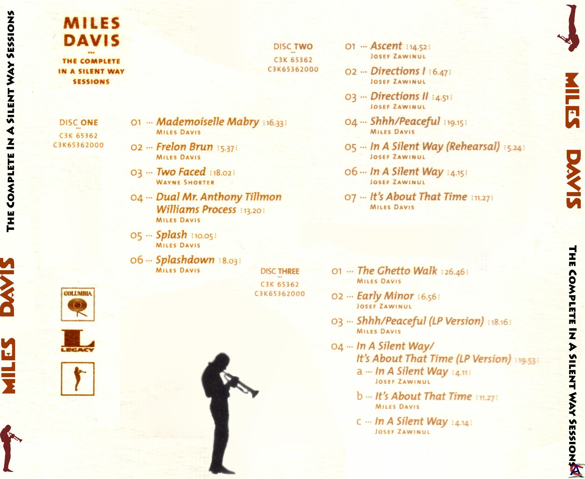 Трэклист CD1 1-1 Mademoiselle Mabry 16:33 1-2 Frelon Burn (Brown Hornet) 5:37 1-3 Two Faced 8:02 1-4 Dual Mr. Anthony Tillmon Williams Process 13:20 1-5 Splash 10:05 1-6 Splashdown 8:03 CD2 2-1 Ascent 14:52 2-2 Directions I 6:47 2-3 Directions II 4:51 2-4 Shhh / Peaceful 19:15 2-5 In A Silent Way (Rehearsal) 5:24 2-6 In A Silent Way 4:15 2-7 It"s About That Time 11:27 CD3 3-1 The Ghetto Walk 26:46 3-2 Early Minor 6:56 3-3 Shhh / Peaceful (LP Version) 18:16 In A Silent Way / It"s About That Time (LP Version) (19:53) 3-4a In A Silent Way 4:11 3-4b It"s About That Time 11:27 3-4c In A Silent Way 4:14