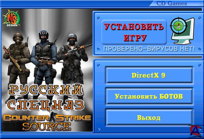 Counter-Strike: Source "Русский спецназ" Системные требования: * Windows 2000/XP/Windows Vista * процессор 1.7 ГГц (рекомендуется 2.4 ГГц) * 256 МБ RAM (рекомендуется 512 МБ) * видеокарта с поддержкой DirectX 7 (рекомендуется с поддержкой DirectX 9). Геймплей основан на классическом Counter-Strike. Все классические карты переделаны, с учётом возможностей движка: повышена детализация, изменены текстуры и модели. Основная идея игры — противостояние двух команд — Спецназа и Террористов. В зависимости от типа игры каждая команда должна выполнить определённые задачи. -Counter-Strike:Source (CS:S) - это продолжение старого CS, но на новом движке фирмы Valve под названием Source engine. На этом же движке сделан и Half-Life 2. Карты Все классические карты из оригинальной игры были переделаны и улучшены с учётом возможностей движка: повышена детализация, изменены текстуры и модели. В первой версии игры число карт было невелико, но позже разработчики добавляли с помощью системы Steam новые карты, расширяя возможности игры и движка. В CS:S используются римейки старых карт, а также несколько новых карт, созданных разработчиками специально для Source. Существует 18 стандартных карт: cs_assault, cs_compound, cs_havana, cs_italy, cs_militia, cs_office, de_aztec, de_cbble, de_chateau, de_dust, de_dust2, de_inferno, de_nuke, de_piranesi, de_port, de_prodigy, de_tides, de_train. И множество новых. * ba — Особые карты-тюрьмы, на которых участники команды CT являются тюремными охранниками, а T - заключенными. В начале игры у террористов есть только нож, для охранников же есть оружейные с большим выбором оружия. Процесс игры такой: охранники выпускают террористов из камер тюрьмы, а далее приказывают им куда идти или что делать. При этом убивать каждого террориста можно только после того как он нанесет любой урон CT. Таким образом цель CT - уничтожить всех непослушных заключенных, цель T - убить всех охранников * fy — обычно небольшие карты с отсутствием места для закладки бомбы и заложников. Цель - уничтожить силы противника. * dm — большие карты созданные специально для игры на серверах с модом DeathMatch. * surf - карты с наличием специальных пандусов, по которым игрок скользит до нужной ему точки. * zm - карты рассчитанные на большое количество игроков, с огромным количеством различных укрытий для защиты расы людей. Используются только на специальных серверах с установленным Зомби-модом. CS:Source выглядит более чем современно и не вызовет возмущения даже у самого притязательного игрока, в то время как большинство гарантированно будут просто в восторге. Модели оружия выглядят очень реалистично и гораздо красивее, чем те, что есть в CS1.6. То же самое касается и моделей игроков. Наблюдательный игрок сможет заметить, что у оружия снабжённого оптическим прицелом, можно видеть окружающую обстановку сзади игрока на линзе прицела, когда оно находится в не приближённом состоянии.