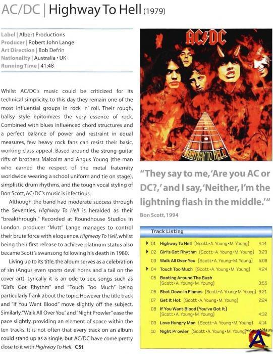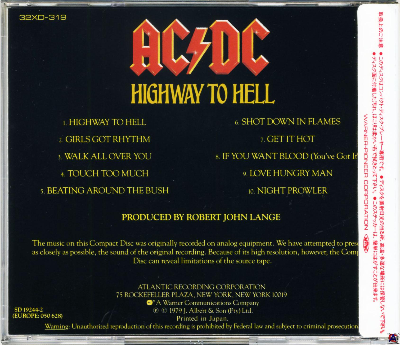 Подробнее Альбом записывался в феврале 1979 года в студии Criteria (Майами, США) и в марте-апреле того же года в студии Roundhouse (Лондон, Великобритания) Альбом стал первой работой группы вошедшей в первую сотню хит-парада Billboard 200. Такие песни, как «Highway to Hell», «Touch Too Much» и «If You Want Blood (You’ve Got It)» получили успех среди фанатов и стали регулярно исполнятся на концертах группы. Журнал Rolling Stone внёс альбом в список «500 величайших альбомов всех времён». Данное издание было продано в США тиражом 7 млн экземпляров и достигло 7х платинового статуса. На данный момент альбом является вторым самым продаваемым альбомом AC/DC, после Back in Black. Highway to Hell является первым альбомом группы спродюсированным не Гарри Вандой и Джорджем Янгом. Первоначально для работы над альбомом был приглашён Эдди Крамер, однако он был уволен до того, как запись альбома была закончена. Его заменил Роберт Джон «Матт» Ланж. После успеха данного альбома он спродюсировал два следующих издания группы (Back in Black и For Those About to Rock (We Salute You)) Песни «Highway to Hell» и «If You Want Blood (You’ve Got It)» также вошли в альбом AC/DC: Iron Man 2, который является саундтреком к фильму «Железный человек 2».