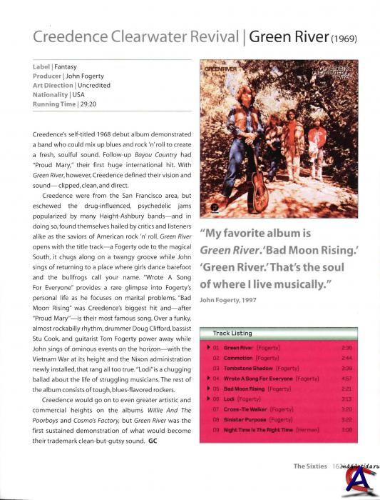 Подробнее Джон Фогерти: "Зеленая река" — это о том месте, где я обычно проводил время в детстве, на реке Пута Крик, под Уинтерсом, Калифорния. Мы приезжали туда с семьей каждый год, когда мне не было еще десяти лет. Осталась куча счастливых воспоминаний. Я научился там плавать. На одном дереве висела веревка, на которой можно было раскачиваться. Конечно же, хватало стрекоз, лягушек. Мы останавливались там в небольшой хижине, владельцем которой был потомок знаменитого Буффало Билла Коуди. Всё это упоминается в песне. Хотя ассоциация названия первоначально была другая. "Зеленая река" была марка газированной воды с сиропом зеленого цвета и лимонным вкусом, моя любимая" Песня Lodi описывает как некоего музыканта занесло в небольшой городок Lodi в Калифорнии (произносится Лоудай), где он не может своей игрой в местных барах заработать себе даже на билет — на автобус или поезд — чтобы уехать отсюда. Фогерти утверждает, что он никогда не был в этом городишке до того, как написал эту песню. Это название, по его мнению, лучше всего передавало некую запущенную "дыру". Как у нас, например, часто называют в этом смысле город Урюпинск. Однако жителям Лоудай, вероятно, понравился такой пиар на весь мир, и песню с ее припевом "О, Боже, опять застрял в Лоудае" часто исполняют там на различных торжественных мероприятиях города. Другой хит альбома — Bad Moon Rising (Скверная луна пошла на рост) стала одной из фирменных песен группы Creedence, по которой ее чаще всего вспоминают. Выйдя синглом она стала хитом №2 в Штатах, а в Соединенном Королевстве — даже №1. Текст в песне довольно суровый, там нагнетаются все стихии мира и чуть ли не конец света. Можно перевести примерно так: Вижу, сквернолунье в росте Вижу, нас невзгоды ждут Вижу землетрясенья, грозы Скверные денечки настают. Не ходи сегодня в ночь Иначе жизнь отымут прочь Скверная луна пошла на рост. Слышу, ураганы воют Знаю, скоро нам конец. Из берегов выходят реки Слышу голос гнева и ... Особенно "мил" последний куплет, который можно перевести как: Я надеюсь, ты уже собрался И готов достойно умереть Кажется, мы просто доигрались Око за око, и смерть за смерть. В 649-м номере журнала Rolling Stone Джон Фогерти объяснил, что написал этот зловещий текст под впечатлением от одного фильма под названием "Дьявол и Даниэль Уэбстер", где ураган сметает почти весь городок. По крайней мере, ураган упоминается в песне, но на самом деле, по словам Джона песня про Апокалипсис. Во время университетских бунтов 1969 года в г. Беркли, Калифорния Bad Moon Rising была одной из основных муз, питавших "студенческую революцию". В 1980-х тема песни полюбилась фантастам, и ее использовали в научно-фантастических фильмах "Американский оборотень в Лондоне / An American Werewolf In London" (1981), "Сумеречная зона / Twilight Zone: The Movie" (1982) и др. Как это часто случается с рок-песнями, где голос вокалиста обычно утоплен в музыке, в Bad Moon Rising есть строчка, которую народ ошибочно воспринимает на слух по-другому. В припеве поется зловещее "There"s a bad moon on the rise / Скверная луна пошла на рост", а народу слышится заурядное бытовое: "There"s a bathroom on the right / А справа там — ванная". После возрождения Creedence в 1990-х годах, не лишенный чувства юмора Джон Фогерти иногда так и пел на концертах про "ванную справа", что можно услышать, например, на концертном альбоме Premonition (1998). Вообще, оригинальность или, как говорят, "одна из фишек" этой 