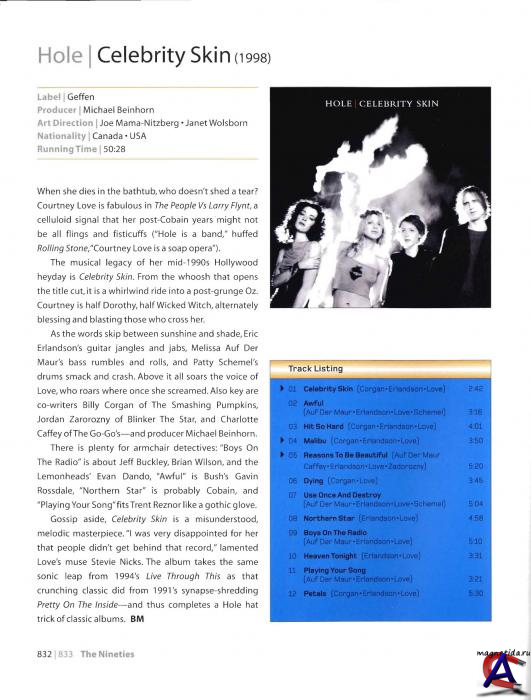 Дебютный альбом коллектива, «Pretty on the Inside» (1991, продюсер — Ким Гордон), произвел сенсацию на андерграундной музыкальной сцене: «New Musical Express» поставил его рядом с «Horses» Патти Смит, «Spin» включил в число «альбомов года». Альбом отличался тяжелым, агрессивным нойз-ориентированным звучанием, но, как отмечал все тот же «Spin», за его «шумной, напористой яростью скрывались на удивление запоминающиеся мелодии». Последовавший за ним «Live Through This» (1994), более «радиоформатный» и сдержанный, нежели его предшественник, был высоко оценен критиками и нередко называется самой яркой работой группы; позднее он был включен журналом «Rolling Stone» в число 500 величайших альбомов всех времен. Звучание же третьего лонгплея, «Celebrity Skin» (1998), стало еще более мягким и мейнстрим-ориентированным: он был выдержан в стилистике поп-рока/пауэр-попa, разительно отличавшейся от нойзового, абразивного саунда ранних Hole, и стал самым коммерчески успешным релизом группы. Через несколько лет после его выхода коллектив прекратил свое существование.