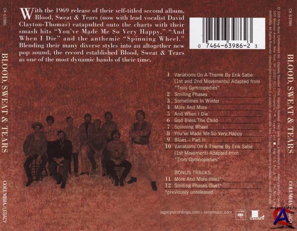 Подробнее Воодушевленный первым альбомом Child Is Father to the Man (1968), вокалист и первый лидер группы Эл Купер принялся было собирать песни для следующей пластинки. Однако если в первом альбоме у Купера были полностью развязаны руки, и он делал там все, что хотел (не случайно, многие считают тот альбом бенефисом Купера), то на сей раз гитарист Стив Катц и ударник Бобби Коломби захотели играть более активную роль в направлении движения группы. Им не нравился вокал Купера, они хотели найти вокалиста получше, с сильным голосом, а Куперу предложили роль клавишника и композитора. С чем он не согласился, в результате чего покинул им же созданную группу. Купер успел поучаствовать в аранжировке нескольких вещей для нового альбома, а потом ушел работать штатным продюсером в Columbia Records. В это же время группу покинули двое духовиков. Трубач Рэнди Бреккер ушел играть в джазовый оркестр Хорэйса Силвера, потом со своим братом Майклом создали собственный достаточно успешный фанк-фьюжн коллектив Dreams, затем The Brecker Brothers, позже он играл с Фрэнком Заппой, Джако Пасториусом, Dire Straits — в общем имел богатую музыкальную жизнь. Другой трубач — Джерри Уайсс ушел играть тоже в чисто джазовый коллектив под названием Ambergris. На их место пришли трубачи Чак Уинфилд и Лью Солофф. Причем Солофф (судя по фамилии, явно из русских эмигрантов) имел богатый опыт игры с такими корифеями джазовой и легкой музыки как Мачито, Джил Эванс, Тони Скотт и Тито Пуэнте. Кроме того, группу пополнил новый тромбонист Джерри Хайман, а прежний — Дик Халлиган — взялся играть еще и на клавишных. В итоге, Blood, Sweat & Tears стали нонетом, т.е. музыкальным коллективом, состоящим из девяти исполнителей. А Стив Катц и Бобби Коломби стали искать нового вокалиста для группы. В то время басист BS&T Джим Филдер как раз имел роман с певицей и пианисткой Лорой Найро, и ей предложили заглянуть как-нибудь к ним на репетицию. Однако Лора, по каким-то своим соображениям, не стала участвовать в BS&T. Позже она получила гораздо большее признание не как исполнительница, но как талантливая сочинительница песен — и музыки, и текстов, — имея на личном счету несколько всемирно известных хитов. В данном альбоме, в частности, одна из известнейших песен Blood, Sweat & Tears — "And When I Die" (Когда я умру) — ее сочинения. Пробовали завербовать в качестве вокалиста Стивена Стиллза, который играл и пел в Buffalo Springfield. Того самого Стиллза, который прославился в группе Crosby, Stills & Nash (а потом еще Young). Но Стиллз был в то время по уши завязан вместе с Элом Купером и Майком Блумфилдом в работе над альбомом Super Sessions. Узнав, что ее друзья Катц и Коломби ищут певца, автор и исполнительница (бард) Джуди Коллинз рассказала им про некоего Дэвида Клейтона-Томаса, выступление которого она видела однажды в нью-йоркском клубе и осталась сильно впечатлена. По ее же наводке они пришли на очередной концерт. Клейтон-Томас жил в то время в Канаде, имел там даже несколько хитов и бывал с концертами в Нью-Йорке. Катц и Коломби сразу оценили вокал Дэвида с характерным блюзовым оттенком. Они поняли, это был парень то, что надо. Он как никто другой подходил для музыки Blood, Sweat & Tears, и ему сразу предложили роль ведущего вокалиста в группе. Дэвид Клейтон-Томас, которому было в то время 27, имел необычную ломанную судьбу и много чего повидал. Он родился под именем Дэвид Генри Томсетт в суровом 1941 год