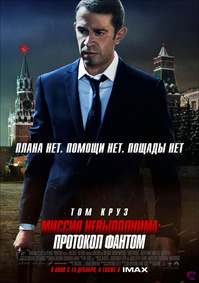 Информация о фильме: Специальный агент отряда «Миссия невыполнима» Итан Хант и его коллеги несправедливо обвинены в причастности к взрыву Кремля. Президент инициирует «Протокол Фантом», в результате которого спецподразделение ликвидировано, и Итан остается без какой-либо поддержки. Он намерен очистить свое доброе имя и предотвратить новую атаку, но делать это ему придется вместе с командой коллег, истинных мотивов которых он до конца не знает.