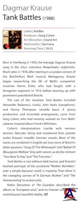 Увлечение Дагмар Краузе кабаре Веймарской эпохи и ее любовь к работам драматурга Бертольта Брехта и его музыкальных партнеров Курта Вайля и Ганса Эйслера стали основой для многих ее сольных проектов.