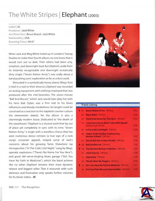 Рецензия Грязное приглушенное рок-н-ролльное звучание 70-х, жесткий прямолинейный гитарный драйв, дерзкий вокал, запиленный звук, как со старой пластинки — все это присутствует в творчестве White Stripes с избытком, а точнее это и является тем каркасом, на котором и держится вся их концептуальная конструкция. Хотя никакой особой концепции тут и нет: в начале своей карьеры в 1997 Мэг Уайт (Meg White) и Джек Уайт (Jack White) порешили делать рок-н-ролл в чистом виде и ничего больше, и, собственно, от этой идеи (судя по материалу новой пластинки) отказываться не собираются. Мэг по-прежнему раздалбывает барабанные установки так, что ей позавидовал бы в этом юный Игги Поп, а Джек пишет песни, похожие на все вместе взятые песни прошлого. Многие начнут возражать, — дескать, в последнее время понавылазило как грибов после дождя подобных любителей попаразитировать на заслугах легенд старой рок-н-ролльной гвардии, тут тебе и The Strokes, и Hives, и им подобные. Да в общем-то, нет здесь ничего предосудительного: ведь кто-то должен донести до тех индивидов, для которых рок-музыка начинается с Nirvana и Linkin Park, как это дело звучало лет 30 назад. Рокеры со стажем лишь усмехнутся, а молодое поколение раскроет от культурного шока рот — а затем и кошелек, и прикупит в порыве страсти миллион — другой пластинок, как и произошло в случае с White Stripes. "Elephant" — уже четвертый студийный альбом дуэта Джека и Мэг, на котором музыканты продолжили с придыханием рассыпаться в комплиментах к музыке давно минувших дней. Нервозный гаражный рок, накачанный пафосом тяжелый гитарный драйв, размеренные полуакустические фолк-баллады, немного панка и хард-рокового угара — проглотив все это, можно смело отправляться с White Stripes в путешествие на виртуальной машине времени практически к самым истокам настоящей музыки. Одно до сих пор не ясно — то ли White Stripes откровенно стебутся над своим слушателем, то ли действительно — такого рода творчество стоит принимать за чистую монету и восхищаться талантливыми стилизаторами, в которых теплится дух настоящего рок-н-ролла. Так или иначе, пройти мимо этого уникального, в своем роде, релиза будет непростительной ошибкой. (с) zvuki.ru