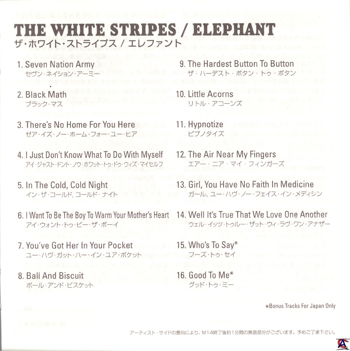 Трэклист 1 Seven Nation Army 3:51 2 Black Math 3:03 3 There"s No Home For You Here 3:43 4 I Just Don"t Know What To Do With Myself 2:46 5 In The Cold, Cold, Night 2:58 6 I Want To Be The Boy To Warm Your Mother"s Heart 3:20 7 You"ve Got Her In Your Pocket 3:39 8 Ball And Biscuit 7:19 9 The Hardest Button To Button 3:32 10 Little Acorns 4:09 11 Hypnotize 1:48 12 The Air Near My Fingers 3:40 13 Girl You Have No Faith In Medicine 3:17 14 Well It"s True That We Love One Another 2:42 15 Who"s To Say 4:35 16 Good To Me 2:06