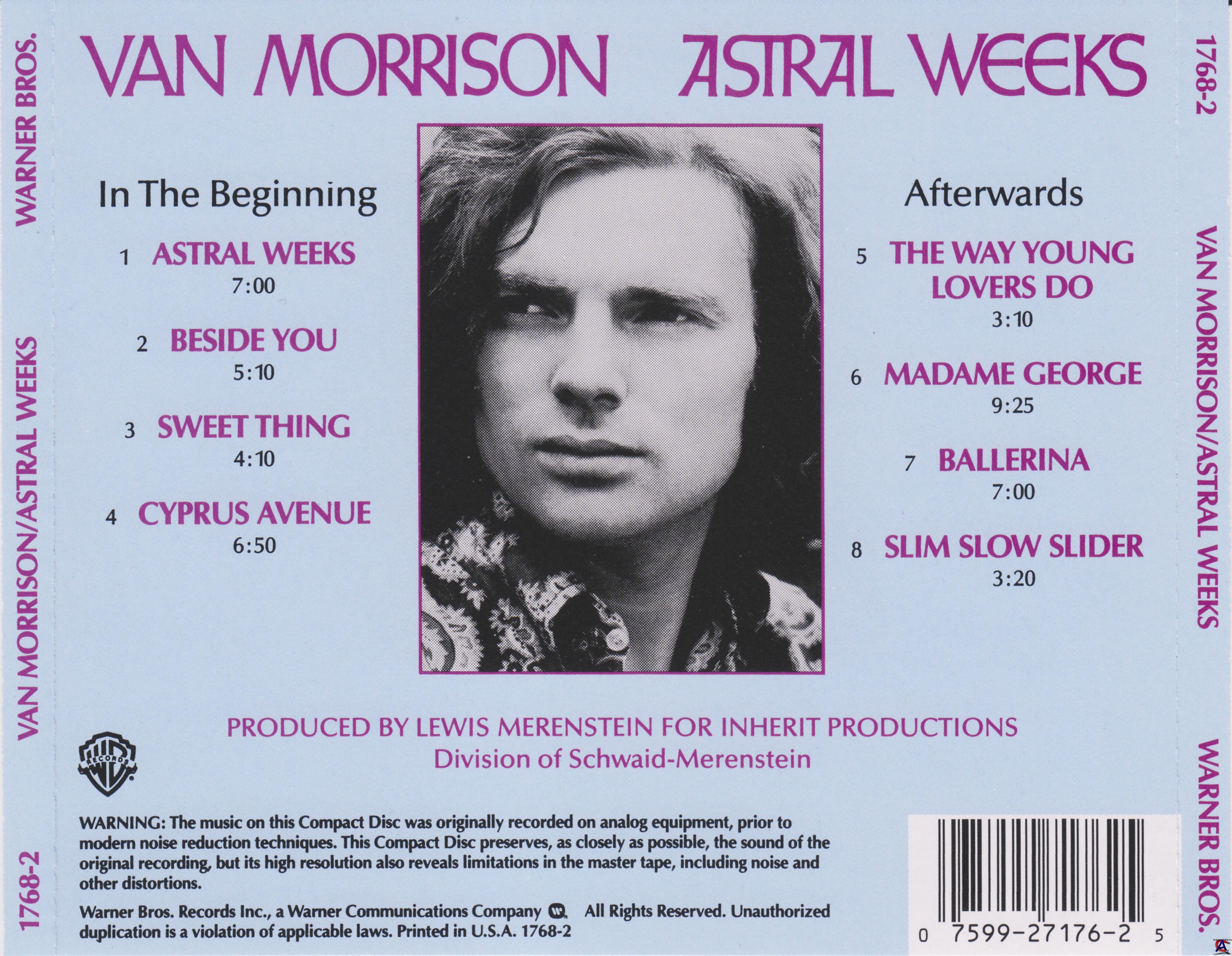 Трэклист In The Beginning 1 Astral Weeks 7:02 2 Beside You 5:17 3 Sweet Thing 4:26 4 Cyprus Avenue 7:00 Afterwards 5 The Way Young Lovers Do 3:17 6 Madame George 9:46 7 Ballerina 7:04 8 Slim Slow Rider 3:23