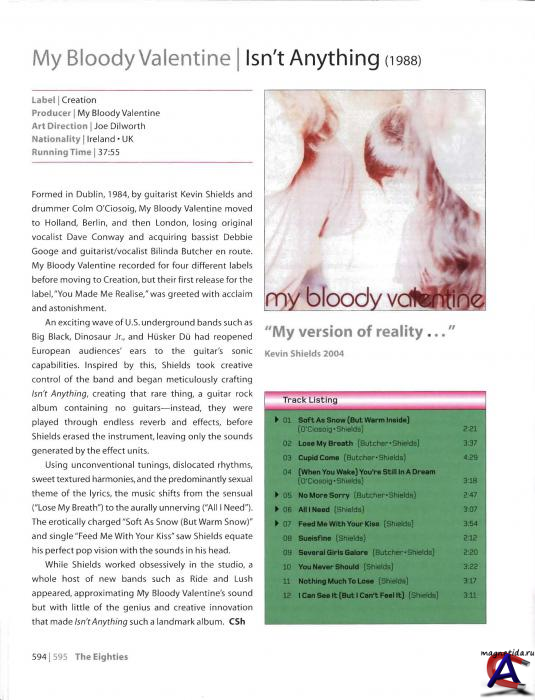 Подробнее Ранние годы (1978 — 1985) Кевин Шилдc родился в нью-йоркском квартале Квинс в 1963 году. Когда ему было шесть лет, его семья переехала в Дублин, Ирландия. В конце 1970-х он знакомится с Кольмом О’Кисогом и они быстро становятся друзьями на почве общего увлечения музыкой. В 1983 году они на пару присоединяются к местной панк-рок группе The Complex Toward. В конце того же года Кевин Шилдс и Кольм О’Кисог решают создать свою собственную группу, пригласив в качестве вокалиста Дэйва Конвея. Конвей, чьим настоящим именем было Дэйв Стелфокс, предложил назвать новоиспечённую группу Burning Peacocks, прежде чем музыканты остановились на My Bloody Valentine, что было взято Дэйвом из названия одноимённого фильма ужасов 1981 года. Состав был дополнен Тиной, девушкой Конвея, которая играла на клавишных. Гэвин Фрайдей из дублинской пост-панк группы The Virgin Prunes предоставил группе контакты, обеспечившие их концертом в Нидерландах. На основании уверенности в получении этого концерта группа перебирается в Нидерланды и осталась там на 3 месяца. В связи с отсутствием возможностей и необходимых документов MBV пришлось переехать в Берлин, где они на лейбле Tycoon в начале 1985-го записывают мини-альбом This Is Your Bloody Valentine. Написанный под большим влиянием пост-панка и раннего альтернативного рока того времени, в особенности The Birthday Party, альбом не оказал ожидаемого эффекта на слушателей и после 4 месяцев группа покинула Берлин, ненадолго вернувшись в Нидерланды, прежде чем в середине 1985 года окончательно поселиться Лондоне. Конвей был основным автором песен в первые годы группы, и Шилдс так описывал этот процесс: «для каждой песни он писал около 3 страниц текстов и обычно я и Кольм выделяли куски, которые нам понравились, а Дэвид пел их».