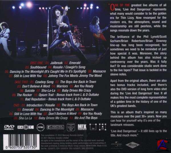Трэклист CD1-1 Jailbreak CD1-2 Emerald CD1-3 Southbound CD1-4 Rosalie / Cowgirl"s Song CD1-5 Dancing In The Moonlight (It"s Caught Me In It"s Spotlight) CD1-6 Massacre CD1-7 Still In Love With You CD1-8 Johnny The Fox Meets Jimmy The Weed CD2-1 Cowboy Song CD2-2 The Boys Are Back In Town CD2-3 Don"t Believe A Word CD2-4 Warrior CD2-5 Are You Ready CD2-6 Suicide CD2-7 Sha La La CD2-8 Baby Drives Me Crazy CD2-9 The Rocker CD2-10 Opium Trail — Bonus Track From L & D Outtakes CD2-11 Bad Reputation — Bonus Track From L & D Outtakes